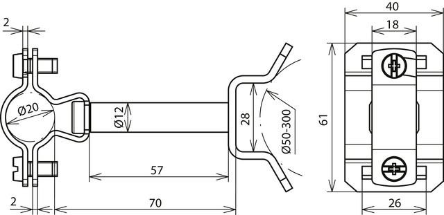 dĺžka 70mm s objímkou pre rúrku 50-300mm