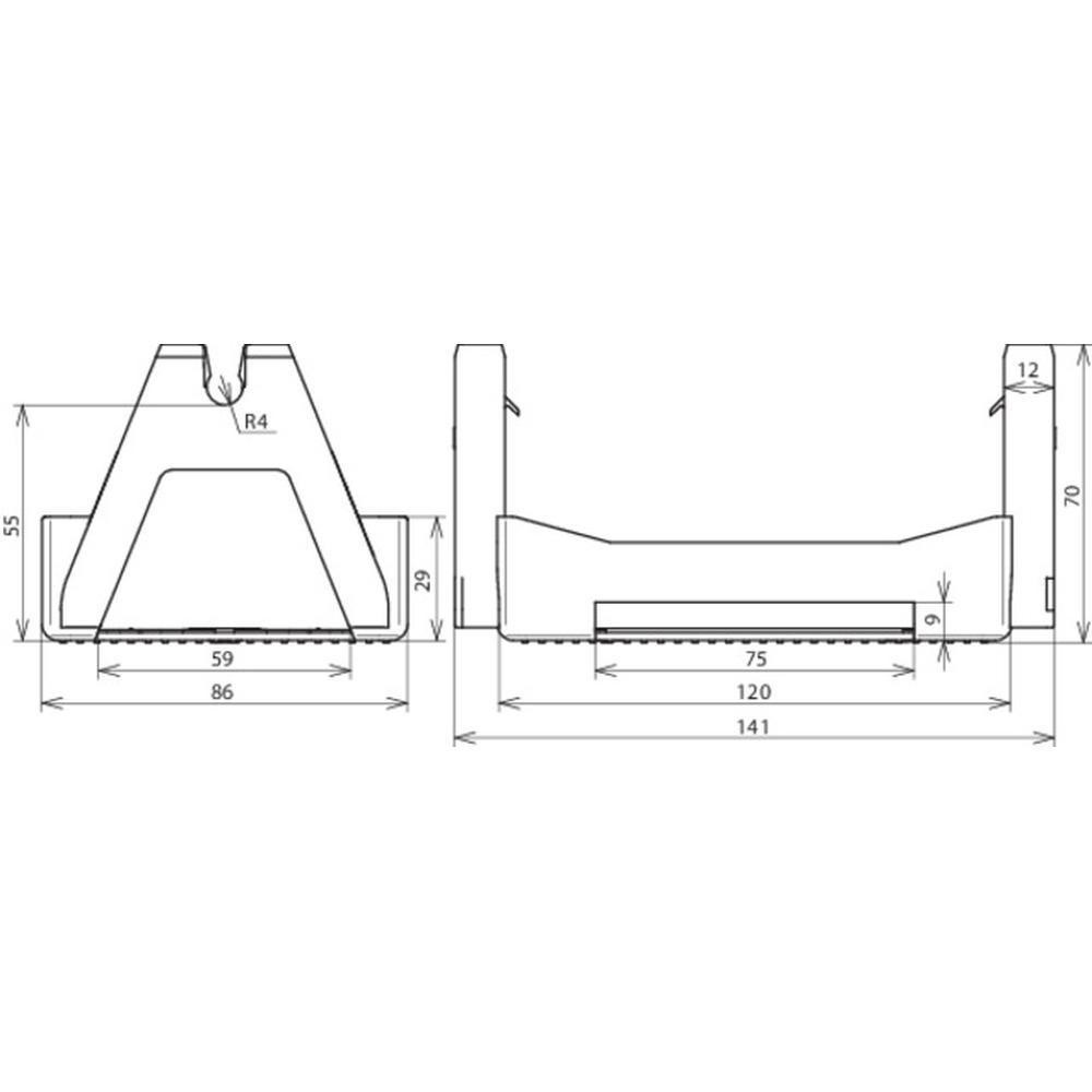 typ KF2 So zdvojeným držiakom. Jednodielna konštrukcia sa prilepí/navarí ku krytine. Hrúbka pásu strešnej krytiny 5mm. Uchytenie vedenia voľné, pre priemer drôtu vedenia D8 mm.