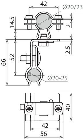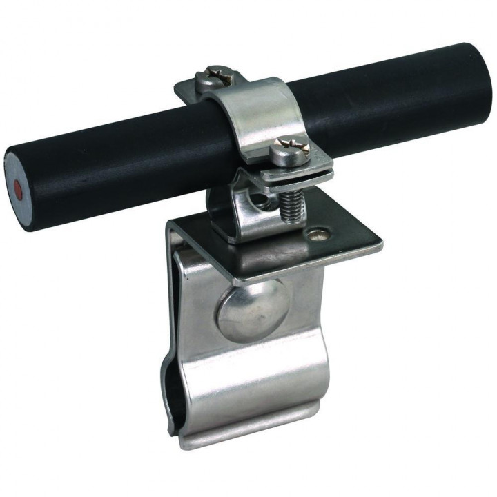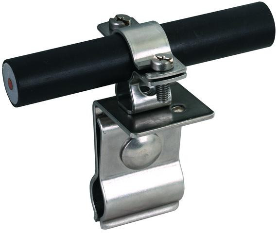 Strešný držiak vedenia s príložkou opatrenou výrezom, pre vodiče HVI light a HVI. na upevnenie na kovové strechy so zvieracím falcom.