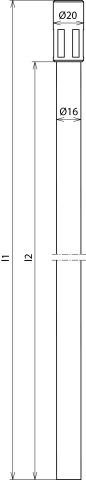 Zachytávacie tyče na inštaláciu oddialeného zachytávacieho zariadenia na rovných strechách. Jímače sa upevňujú pomocou klinku do betónových podstavcov.Pri výpočte dostatočnej vzdialenosti (dĺžky dištančných tyčí) treba uvažovať s koeficientom materiálu km