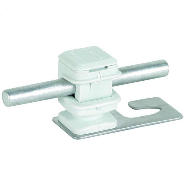 Pre uchytenie hrebeňového vedenia, alebo vedenia v ploche strechy. S držiakom typu DEHNsnap, ktorý zabezpečuje voľné uchytenie. Materiál držiaku vedenia - nerez/plast sivý. Výška držiaku H = 16 mm. Profil 5/8.