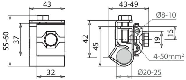 Ø20-25 mm s dvojitou príložkou R Ø8-10 mm a 4-50mm²