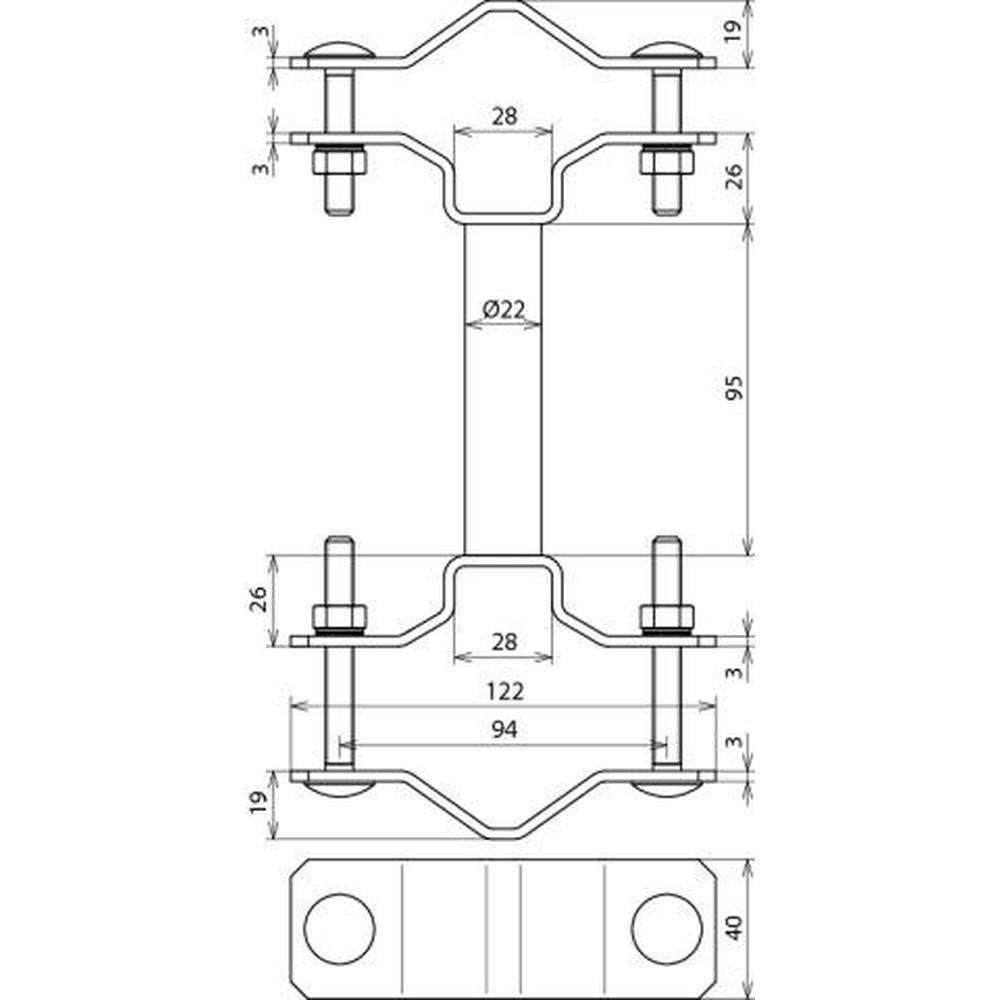 S dištančnou vložkou, na vykompenzovanie rozmeru anténnych držiakov.
