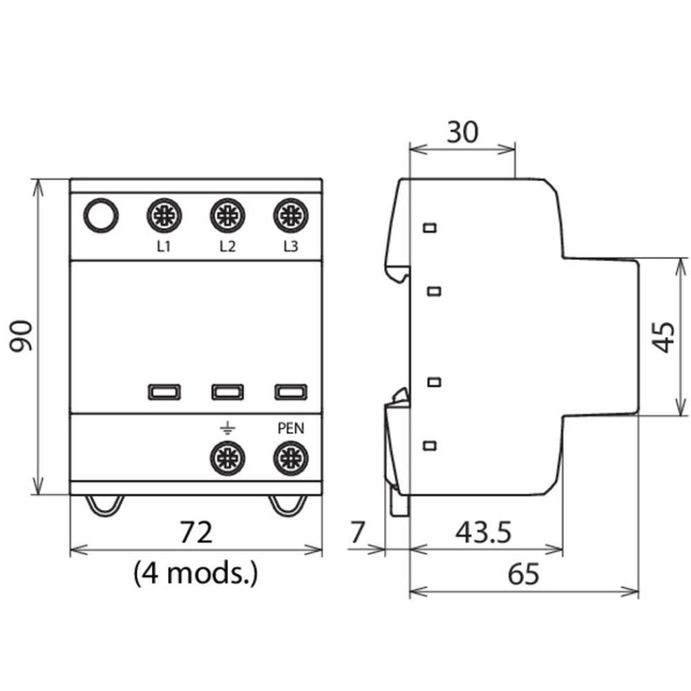 | Nominálny vybíjací prúd (8/20 µs) [L-PEN]/[L1+L2+L3-PEN]: | 12.5 / 37.5 |