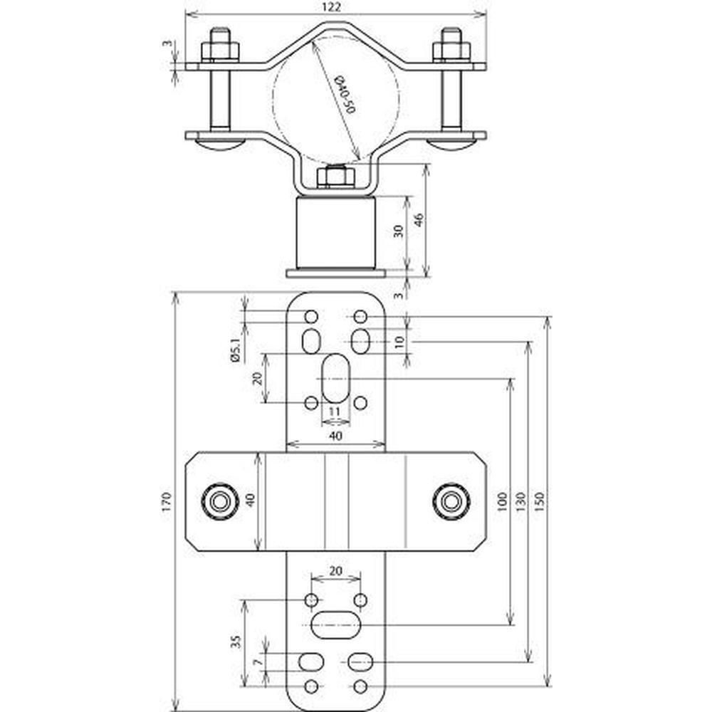 Na upevnenie podporných rúrok alebo zachytávacích tyčí D40/D50 na nadstavby alebo steny.