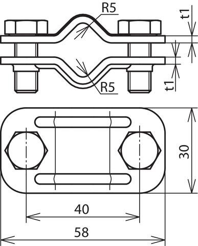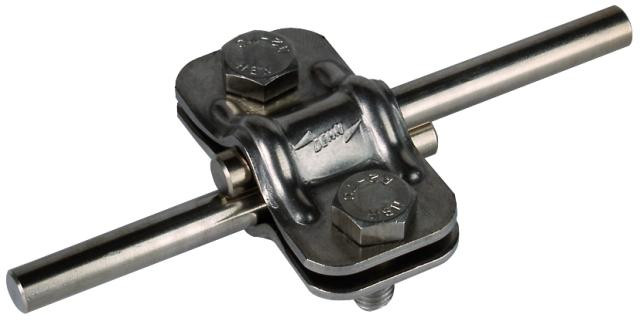 Pre spojenie zvodu s vývodom z uzemnenia. Prevedenie bez medzidoštičky pre dva drôty. Materiál - nerez. Rozsah svorky pripojenia 8 - 10/8 - 10 mm. Dve skrutky so šesťhrannou hlavou M8.
