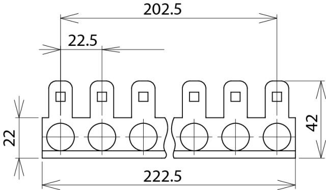 Montážny profil umožňuje uchytiť až 10 svorkovníc LSA radu 2/10.Celková šírka 104,5 mm.