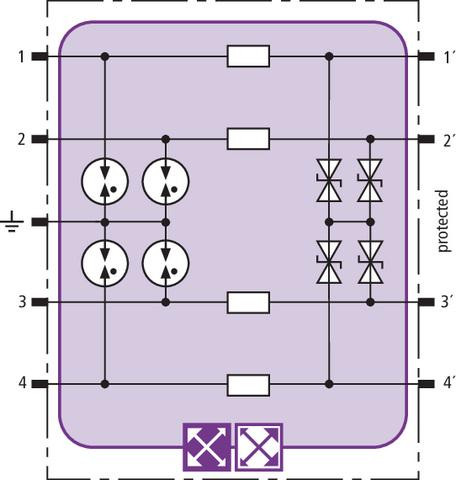 | Napäťová ochranná úroveň vedenia pri 1 kV/µs C3: | ≤ 45 |
