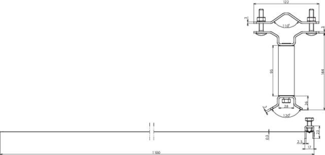 S dlhou dištančnou vložkou pre kompenzáciu držiakov sektorových antén na stožiari