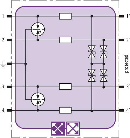 | Napäťová ochranná úroveň vedenia pri 1 kV/µs C3: | ≤ 45 |
