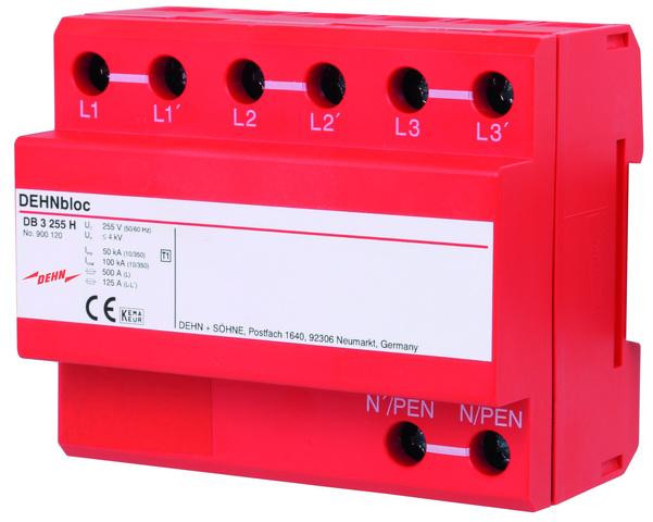 Trojpólový (zapojenie 3-0) zvodič bleskových prúdov so schopnosťou zvádzať vysoké bleskové prúdy, inštalácia v sieťach 230/400 V.
