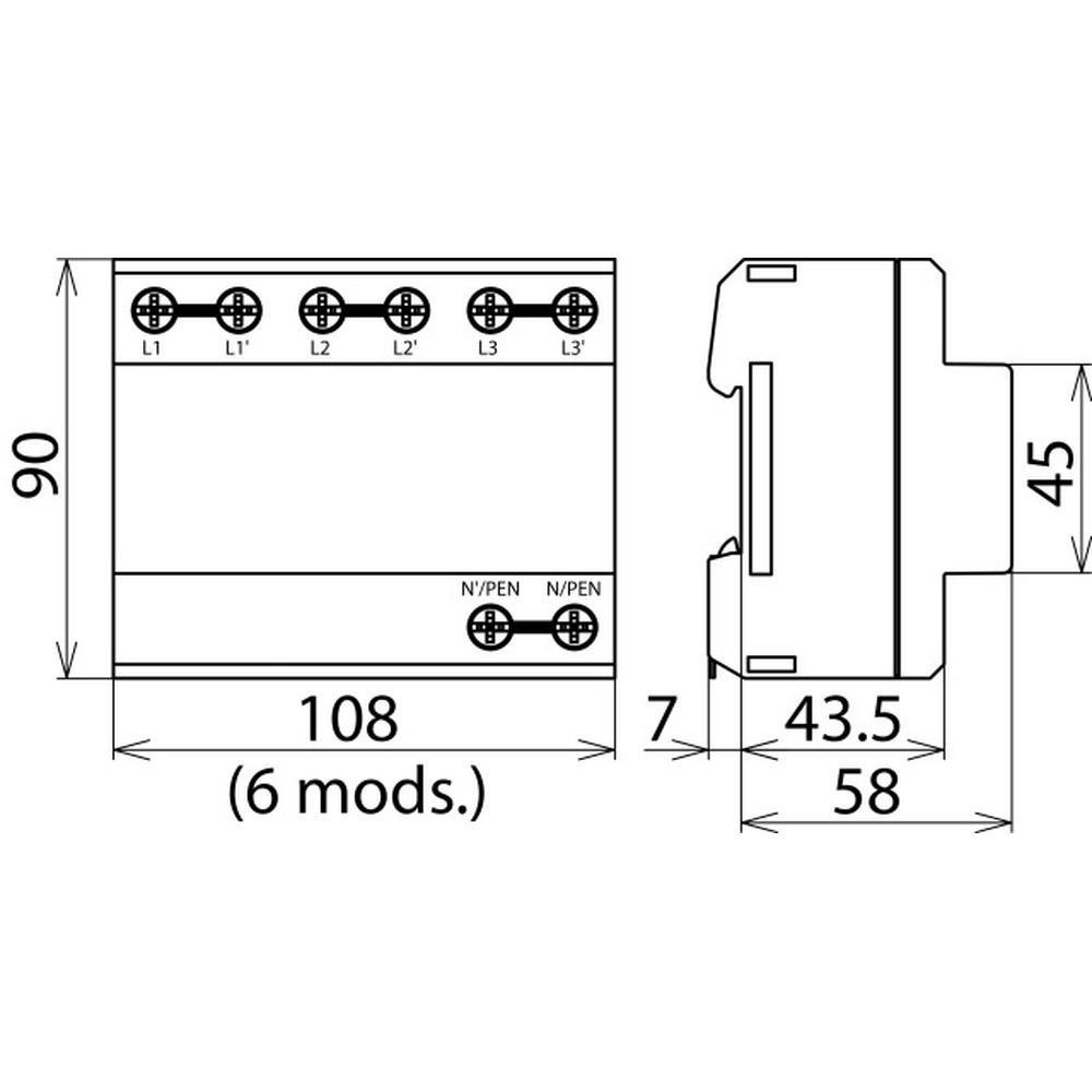 | Plocha prierezu (L1', L2', L3', N'/PEN): | 35 mm2 stranded / 25 mm2 flexible |