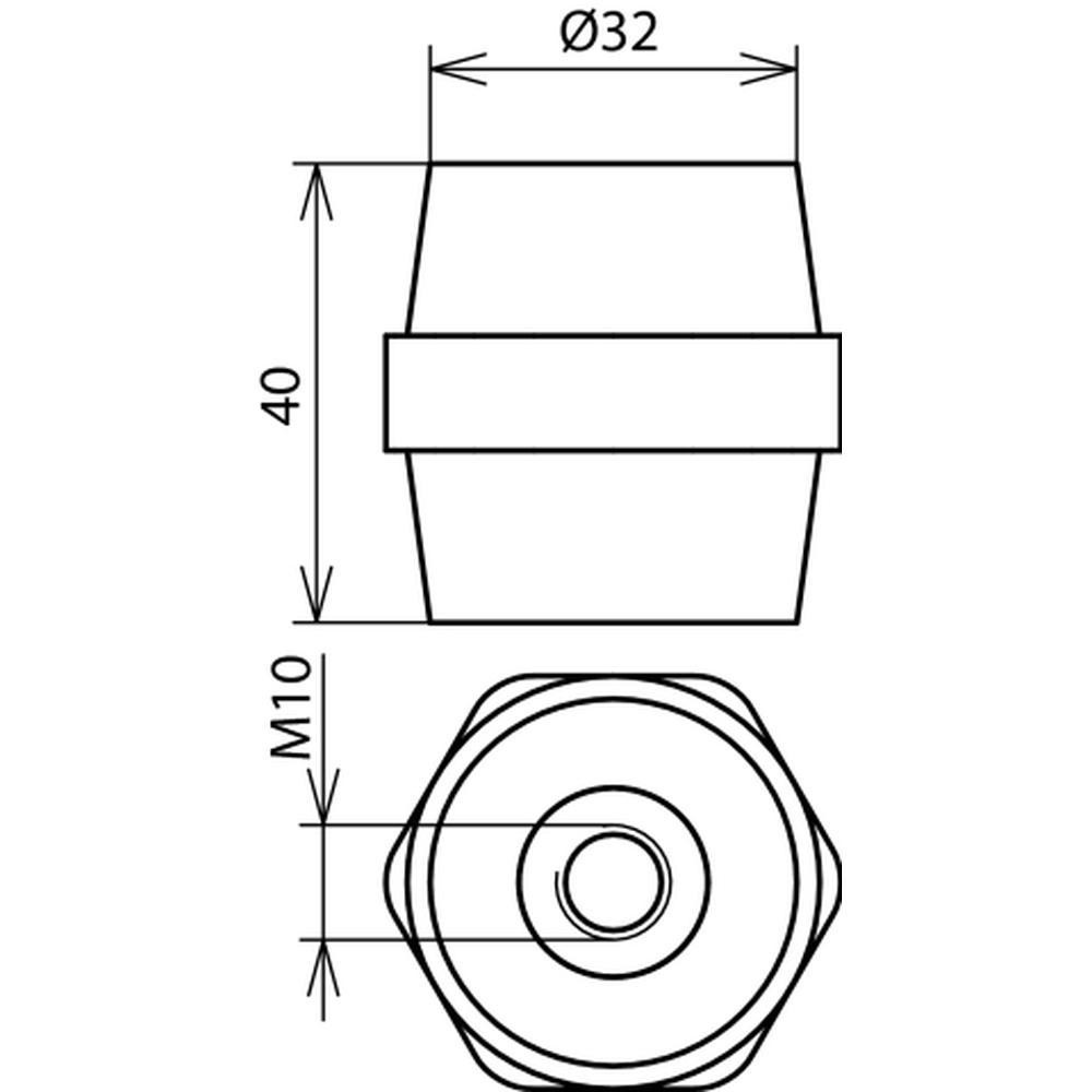 výška 40mm, priem. 32mm, závity M10/M10. Odolná voči UV žiareniu