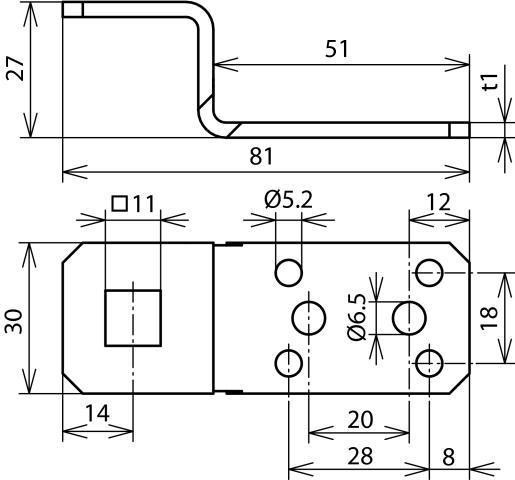 Pre pripojenie oplechovania pomocou skrutiek alebo nitov. Prevedenie so štvorhranným otvorom. Rozmery 11 x 11 mm (napr. pre svorku KS M10), pripojenie pozdĺžne alebo priame. Upevnenie (4x) D5,2/(2x)D6,5 mm. Materiál spojky nerez.
