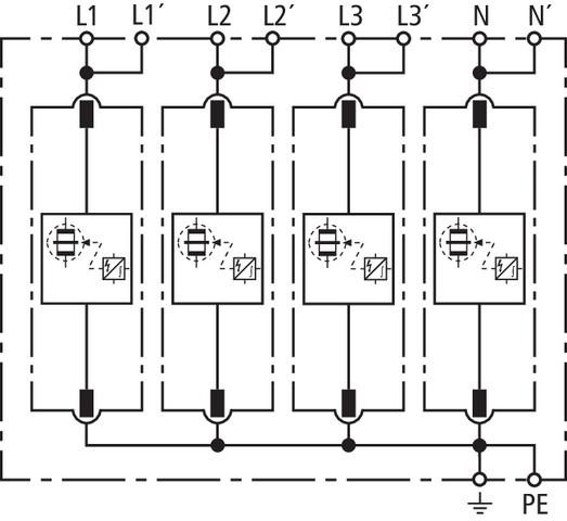 | Nominálny vybíjací prúd (8/20 µs) [L/N-PE]/[L1+L2+L3+N-PE]: | 25 / 100 |