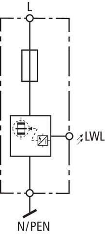 Koordinovaný, jednopólový zvodič bleskových prúdov s integrovaným predistením pre inštaláciu na zbernici v sieťach 230/400 V.