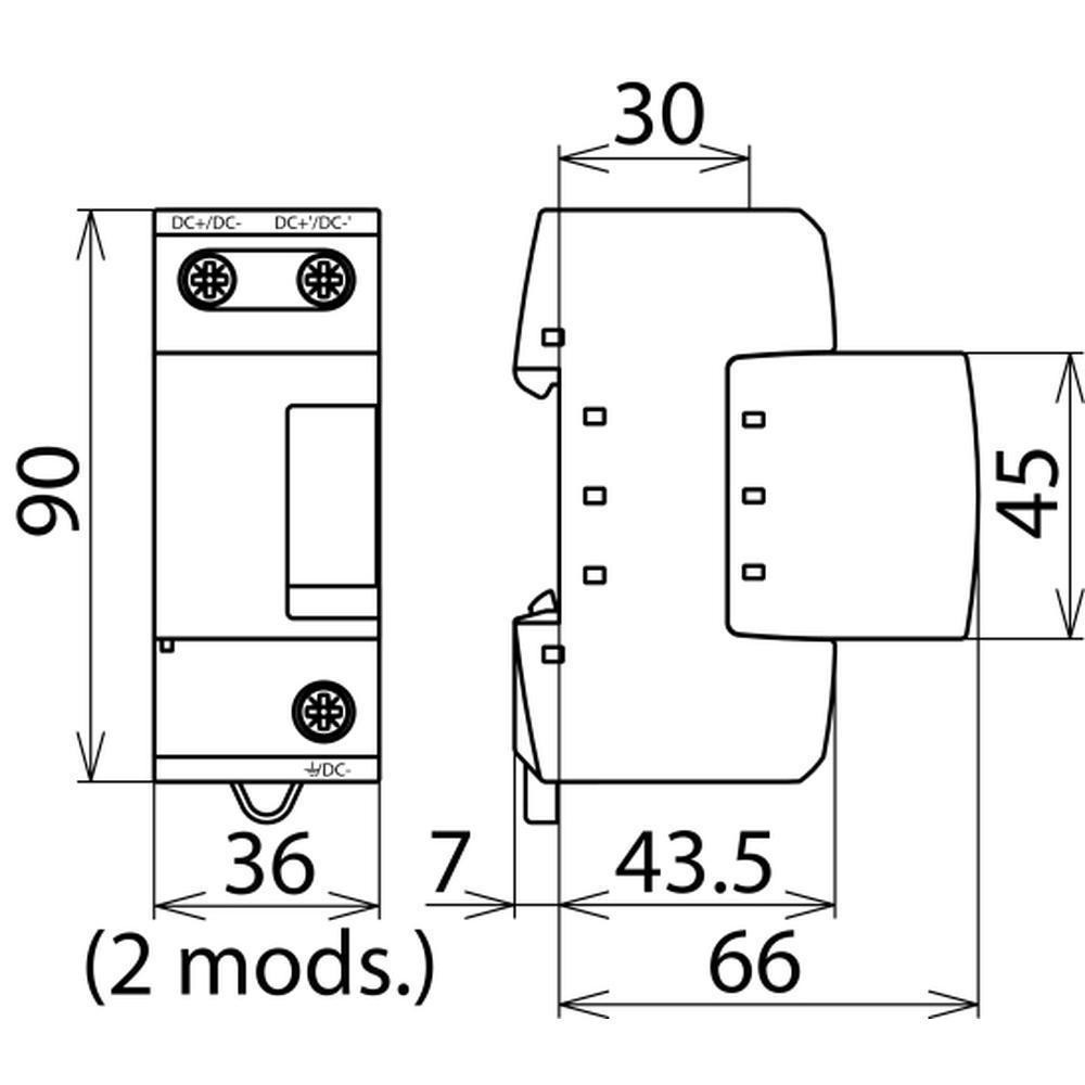 | Plocha prierezu (DC+'/DC-'): | 35 mm2 stranded / 25 mm2 flexible |