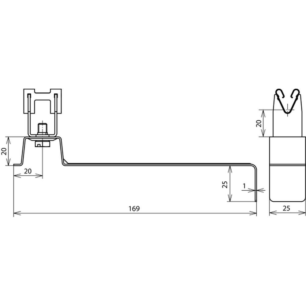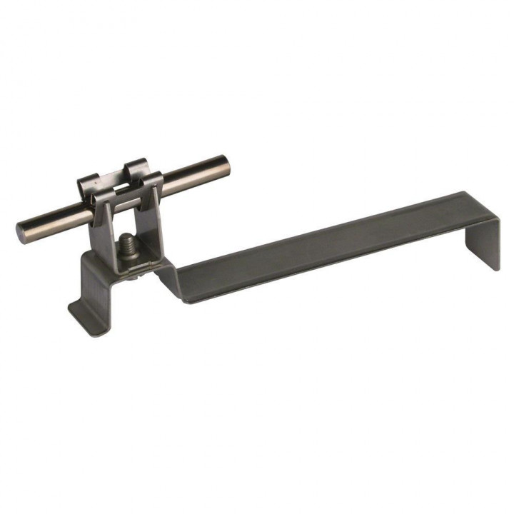 Pre zaháknutie za škridlu. S držiakom vedenia DEHNgrip, ktorý zabezpečuje voľné uchytenie vedenia 8mm. Materiál držiaku - nerez. Dĺžka vzpery L1 = 169 mm. Výška držiaku H = 20 mm.