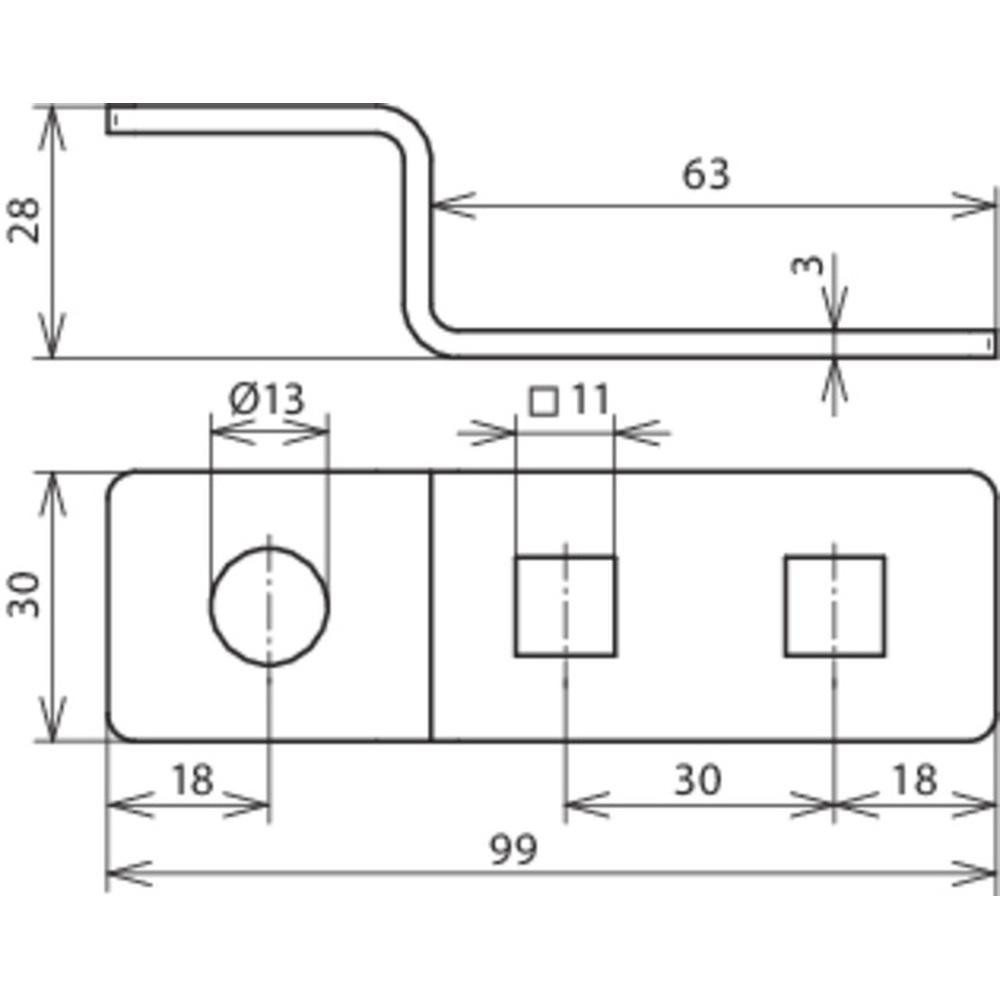 D 11mm a jedným kruhovým otvorom D 13mm, nerez