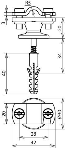 Kompletný držiak vedenia vrátane krytu, pevné uchytenie vedenia.