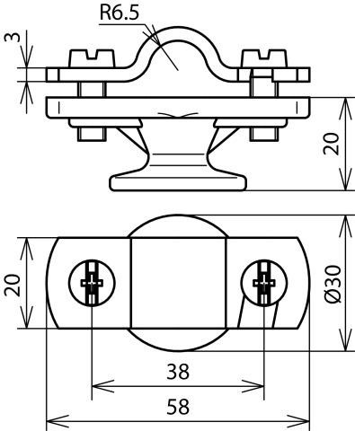 Kompletný držiak vedenia vrátane krytu, pevné uchytenie vedenia. S vnútorným závitom pre montáž M8. Určené predovšetkým pre drôt s umelohmotným plášťom. Priemer drôtu D = 11-13 mm. Materiál držiaku FeZn.