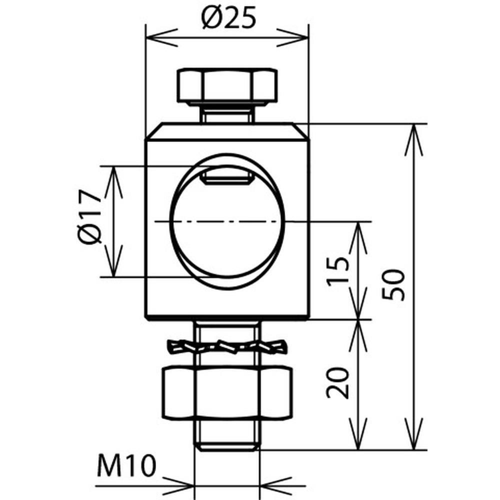 So závitom M10, maticou, zubatou podložkou a skrutkou na uchytenie izolačnej tyče.