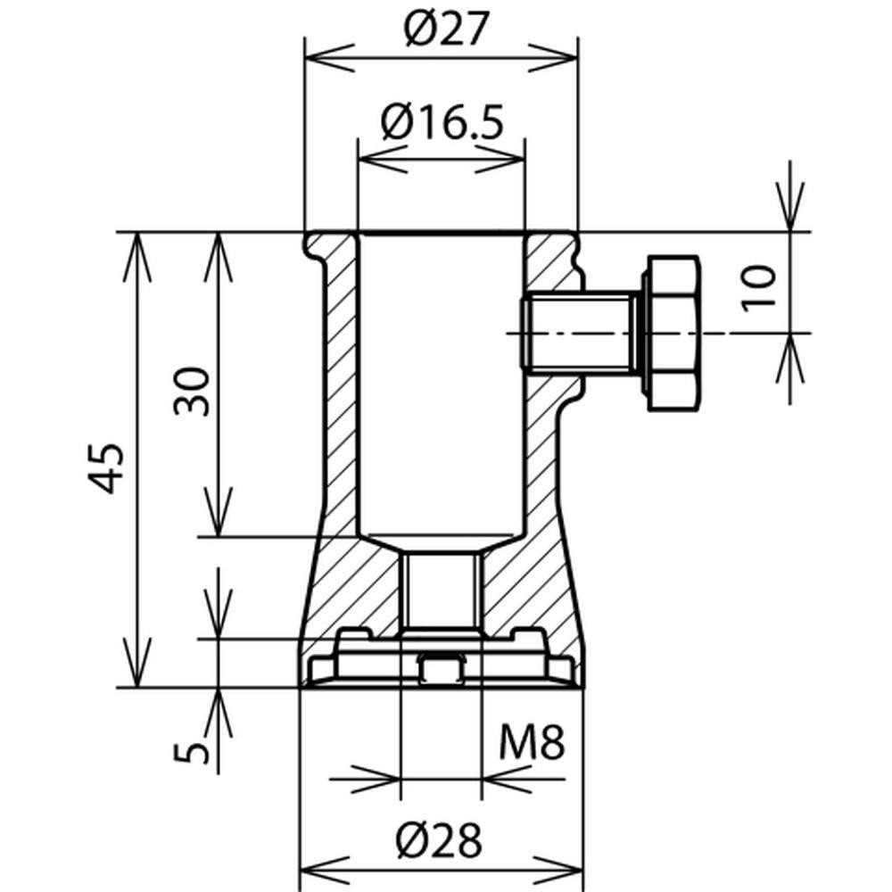 Koncovka pre variabilné upevnenie izolovaných tyčí. Odliatok Zn, vnútorný priemer D = 23 mm, s vnútorným závitom M8. Systém izolovaných držiakov vedenia a zachytávacích tyčí pre dodržanie dostatočnej vzdialenosti podľa STN EN 62305-3. Dištančná tyč z u