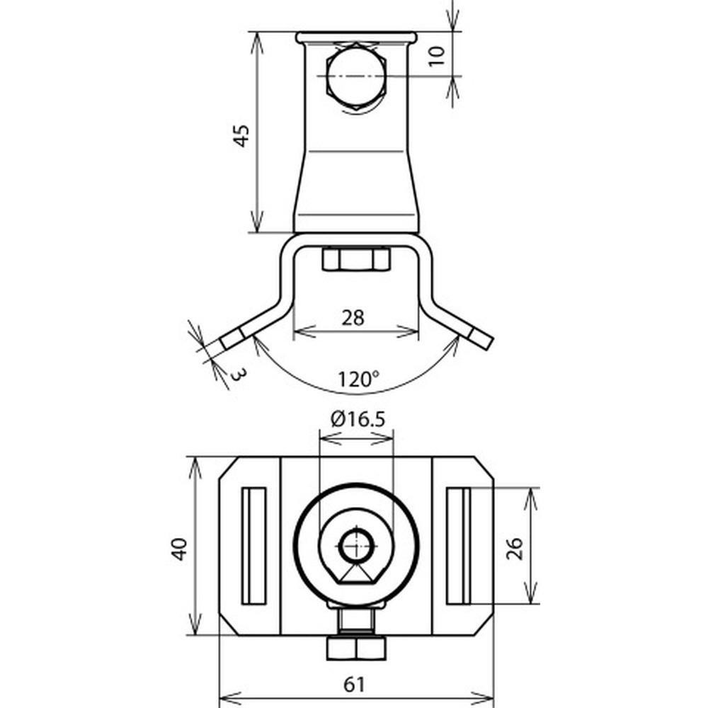 Koncovka pre GFK izolovanú tyč na potrubie pomocou páskovej obímky napr. (obj. č. 106 323) Max. šírka nerezového pásu 26 mm. Systém izolovaných držiakov vedenia a zachytávacích tyčí pre dodržanie dostatočnej vzdialenosti podľa STN EN 62305-3.