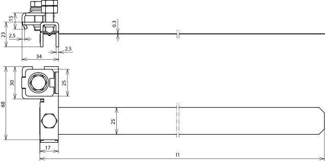 | Poznámka k aplikácii: | For connection with a cable lug the clamping piece has to be removed |