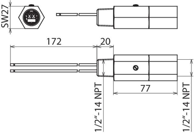 | Pre montáž na (strana poľa / zariadenia): | 1/2-14 NPT female thread / 1/2-14 NPT male thread |