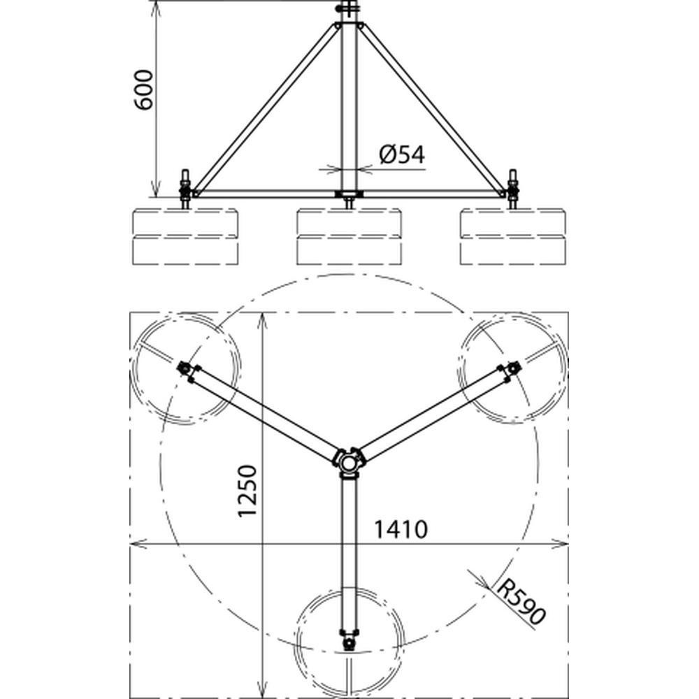 Na postavenie s betónovými podstavcami (hmotnosť 17 kg). Prispôsobenie sklonu strechy do max. 10° prostredníctvom sady upevňovacích tyčí. Zachytávacie tyče D40/podporné rúrky GFK je potrebné objednať zvlášť.