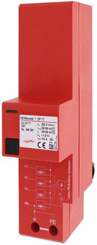 Kombinovaný zvodič pre siete TT a TN-S určený na inštaláciu do hlavného prívodu napájania pre objekty s bleskozvodom as požiadavkami na vysoký výkon (zapojenie 3+1).