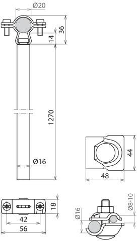 Dištančný držiak na vymedzenie oblasti koncovky vodiča HVI long.So svorkou MV na pripojenie drôtov Ø 16 mm/Ø 8 - 10 mm.Betónový podstavec (obj. č. 102 010, hmotnosť 17 kg) a podložku (obj. č. 102 050) je potrebné objednať zvlášť.