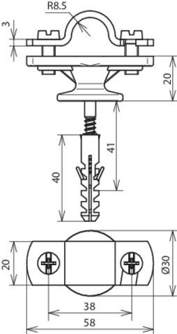 Kompletný držiak vrátane krytu, na uloženie tyče a vývodu z uzemnenia, pevné uchytenie tyče. S hmoždinkou 8 mm a nerezovou skrutkou. Materiál držiaku FeZn. Pre tyč s priemerom D = 16 mm. Kompletný držiak vrátane krytu, na uloženie tyče a vývodu z uzem