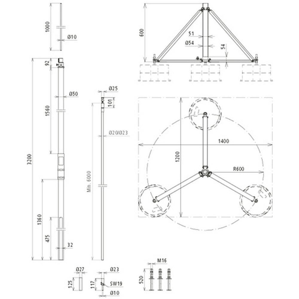 | Priestor potrebný pre statív: | 1400 x 1200 |