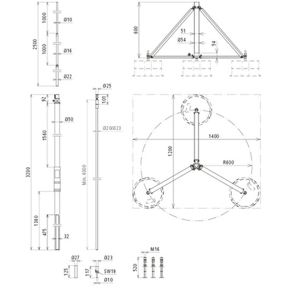 | Polomer statívu: | 600 |