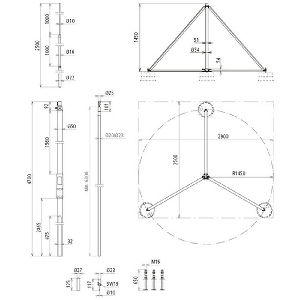 | Priestor potrebný pre statív: | 2900 x 2500 |