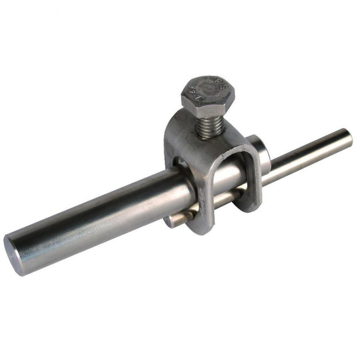 Svorky pre pripojenie vedenia k zachytávacej tyči, pozdĺžne pripojenie vedenia je vhodné pre všetky materiály. Pre priečne pripojenie (krížové usporiadanie) je k dispozícii prevedenie iba pre FeZn a nerez. Materiál svorky nerez. Rozsah svorky drôt/zach