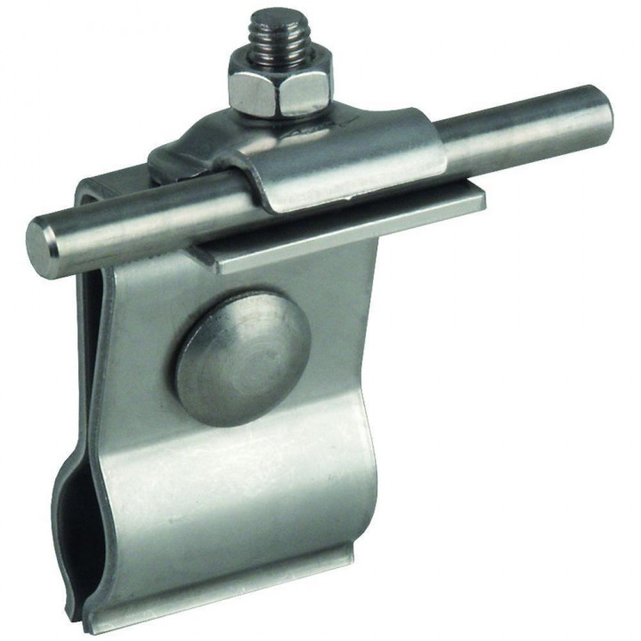 Pre uchytenie zachytávacieho vedenia na plechové strechy s falcovanou krytinou a na kovové konštrukcie. Pri použití dvoch držiakov určených na daný profil falcovaných krytín je zaistená schopnosť viesť bleskový prúd 100 kA (10/350). Materiál držiaku ved