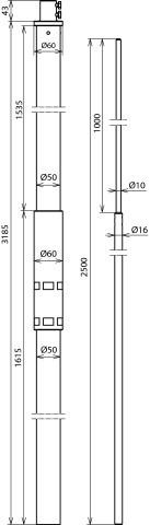 Jednodielna s hliníkovou zachytávacou tyčou Ø 16/10 mm, dĺžky 2500 mm.