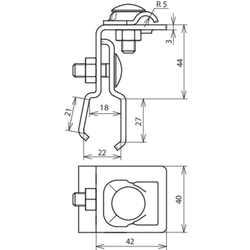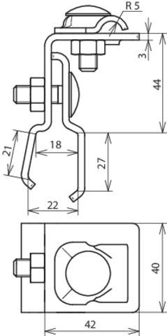 Pre uchytenie zachytávacieho vedenia na plechové strechy s falcovanou krytinou a na kovové konštrukcie. Pri použití dvoch držiakov určených na daný profil falcovaných krytín je zaistená schopnosť viesť bleskový prúd 100 kA (10/350). Materiál držiaku ved
