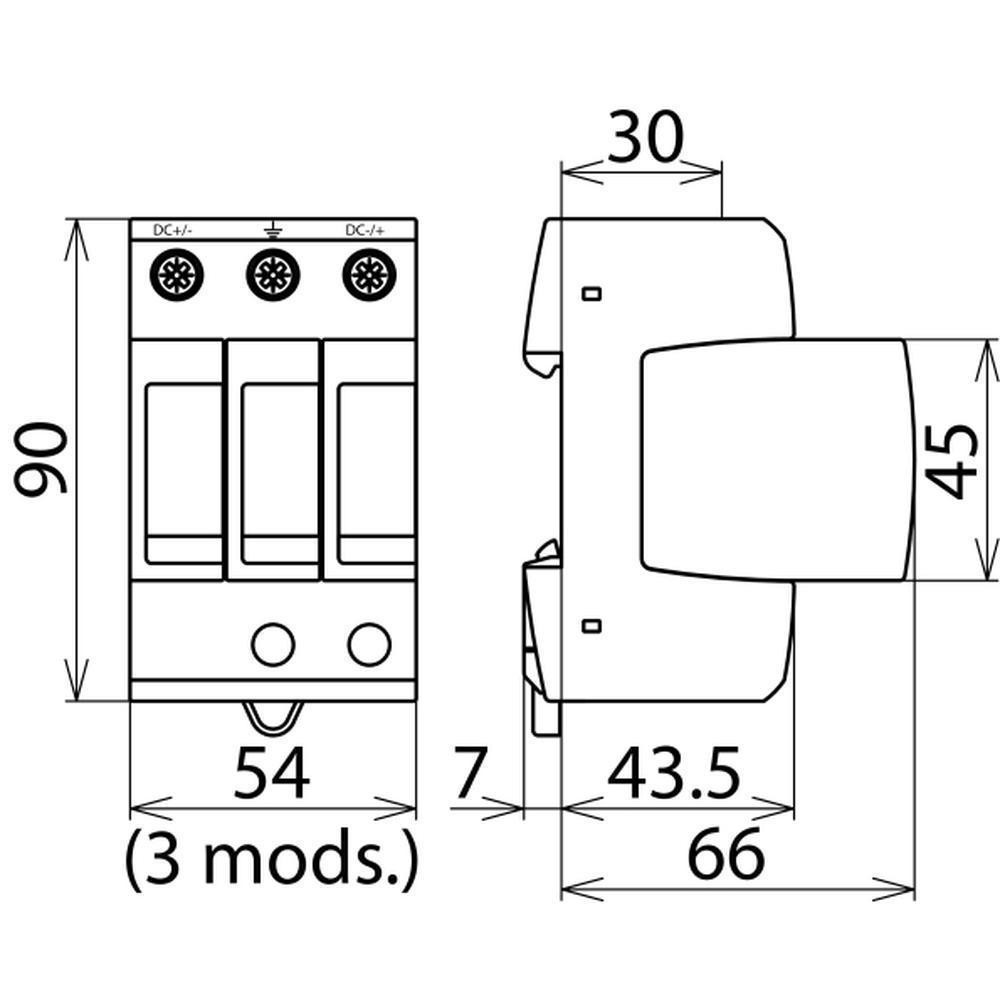 | Max. vybíjací prúd (8/20 µs) [(DC+/DC-) --> PE]: | 25 |