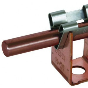 DEHNgrip Nerezový systém, držiak bez skrutky s voľným uchytením vedenia. Materiál držiaku - meď. Výška H = 20 mm s otvorom na upevnenie priem. 7,8mm.