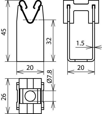 H 20mm s otvorom pre upevnenie priem. 7,8mm