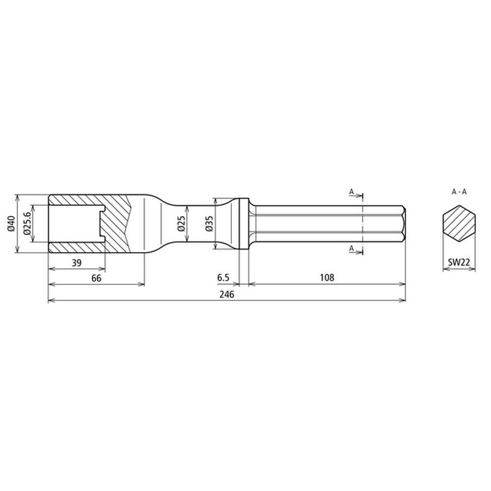 Adaptér: hexagon, wrench size 22 x 108 mm