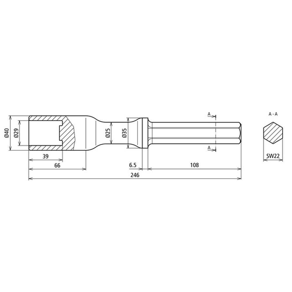Adaptér: hexagon, wrench size 22 x 108 mm