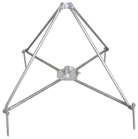 Čtyřramenný stojan (rozkládací verze) pro podpůrné trubky D 50 mm se stranovým vývodem nebo s redukcí pro jímací tyče D 40 mm. S dvojitou příložkou pro připojení dvou drátů prům. 8 - 10 mm, sestavení s betonovými podstavci (hmotnost 17 kg) a přizpůsobením