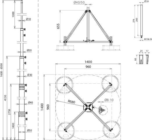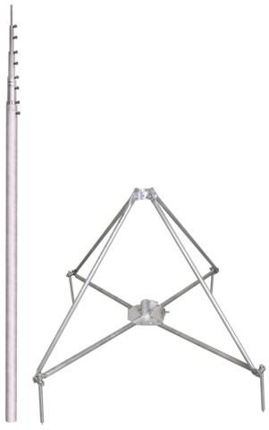 Teleskopická volně stojící jímací tyč se skládacím čtyřramenným nerezovým stojanem. Pro ochranu větších střešních konstrukcí, přizpůsobení sklonu střechy do max. 10°. Jímací tyče jsou dimenzovány podle Eurocode 1 (ČSN EN 1991-1-4 + DIN EN 1991-1-4/NA) pro