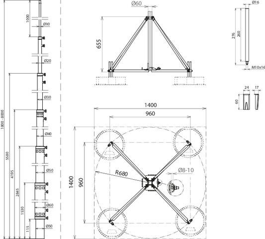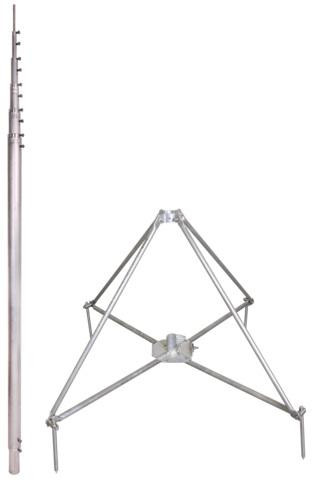 Teleskopická volně stojící jímací tyč se skládacím čtyřramenným nerezovým stojanem. Pro ochranu větších střešních konstrukcí, přizpůsobení sklonu střechy do max. 10°. Jímací tyče jsou dimenzovány podle Eurocode 1 (ČSN EN 1991-1-4 + DIN EN 1991-1-4/NA) pro