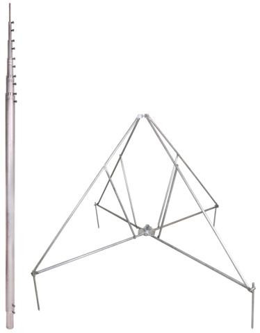 Teleskopická volně stojící jímací tyč se skládacím čtyřramenným nerezovým stojanem. Pro ochranu větších střešních konstrukcí, přizpůsobení sklonu střechy do max. 10°. Jímací tyče jsou dimenzovány podle Eurocode 1 (ČSN EN 1991-1-4 + DIN EN 1991-1-4/NA) pro